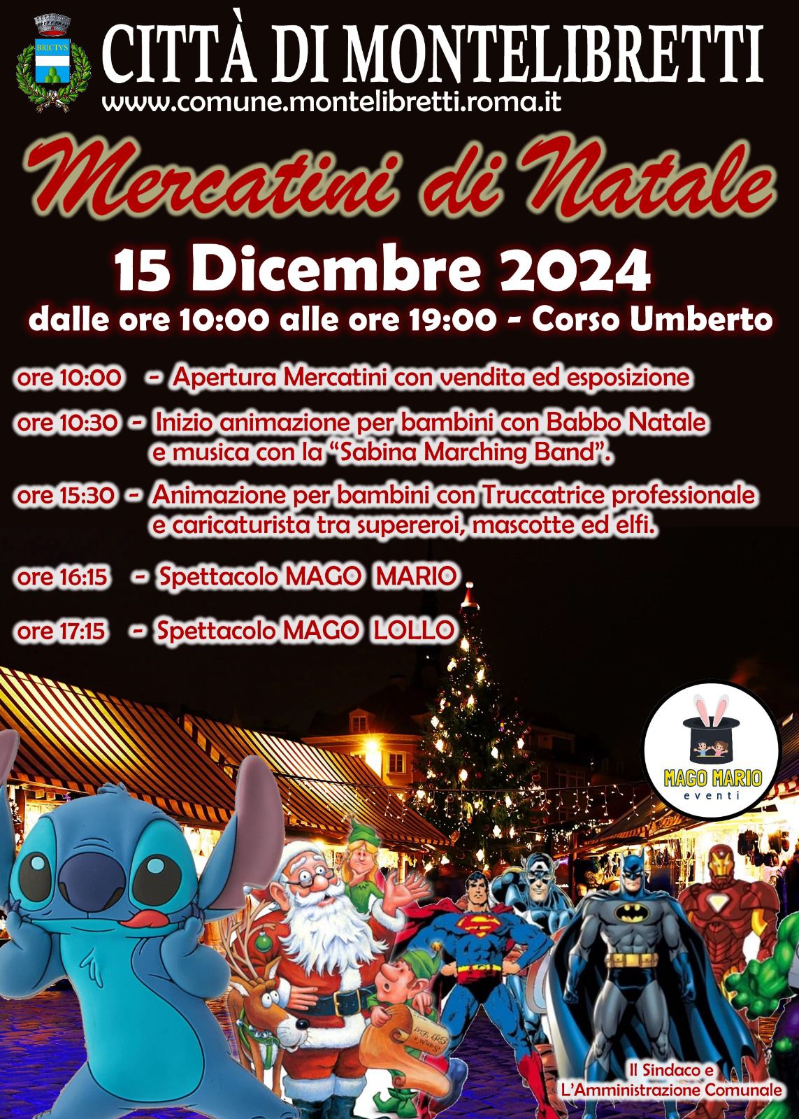 Una giornata indimenticabile che trasformerà la strada principale di Montelibretti nel magico Villaggio di Babbo Natale. I più piccoli, qui, lo potranno anche incontrare e ovviamente giocare con i supereroi. Un’esperienza indimenticabile tra giochi, spettacoli e tante sorprese.