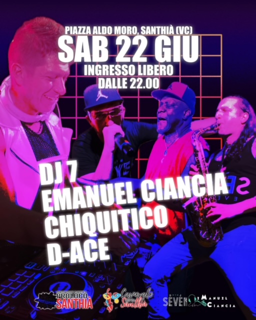 Sabato la serata sarà allietata dalla musica di Dj Seven, con Emanuel Ciancia, Chiquitico e D-Ace.