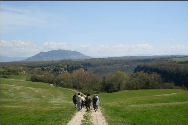 Un percorso che parte da Nepi fino a raggiungere uno dei luoghi meno conosciuti e più tipici della Provincia di Viterbo, il rudere di Castel d’Ischi, dal quale è possibile ammirare uno spettacolo naturale unico come la vista panoramica sulla forra del fosso Cerreto, dove l’erosione fluviale profonda, unita alla rigogliosa natura insediatasi nella Forra, ha creato uno scenario unico. Per raggiungere questa bellezza naturale si attraversano scorci caratteristici come la via tagliata nel tufo dei “Cavoni” di Nepi, imperdibile sia in autunno che in primavera quando il microclima, la natura e raggi di sole che penetrano all’interno della tagliata, adornano uno scenario da fiaba; si scopriranno radure panoramiche sui centri abitati di Nepi e Castel Sant’Elia, dove si potranno scoprire l’architettura dei paesi e le vicissitudini storiche che li hanno caratterizzati, senza dimenticare l’aspetto naturale. Si passerà poi alla campagna più tipica, caratterizzata da verdi pascoli a vista d’occhio. La passeggiata sarà guidata dai membri dell’associazione Esplora Tuscia nello specifico: un geologo, un agronomo forestale ed un’esperta archeologa. Per questa passeggiata è consigliato il pranzo al sacco oppure può essere organizzato un pranzo alla griglia da parte dell’organizzazione.