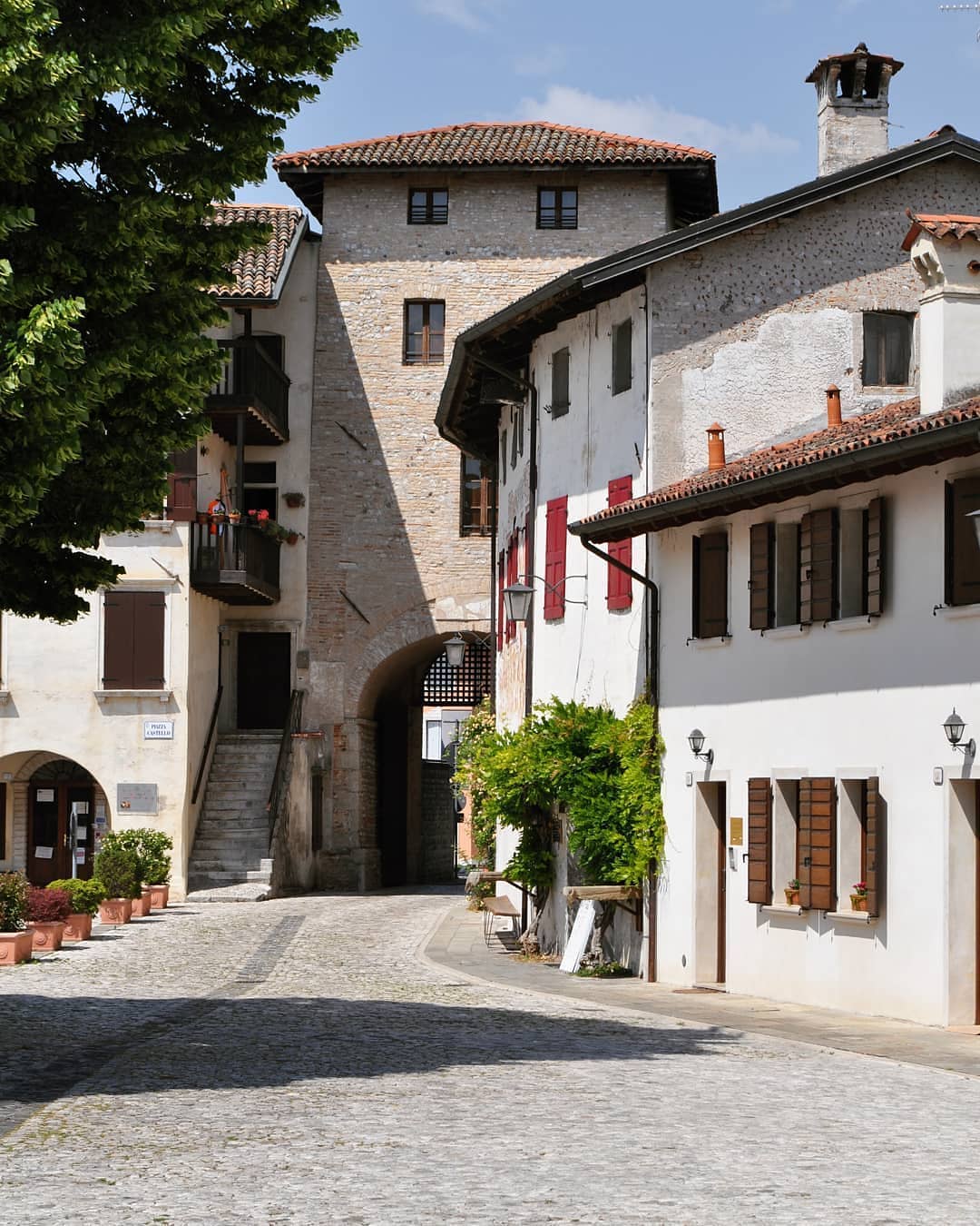 Sulla destra del Tagliamento, a ridosso dell’antico guado che permetteva il passaggio di viandanti e pellegrini, c’è la bella e ancora visibilmente medievale Valvasone. Graziose calli e piazze con le antiche dimore munite di portici e preziosi decori, le sue chiese e il suo imponente maniero.
